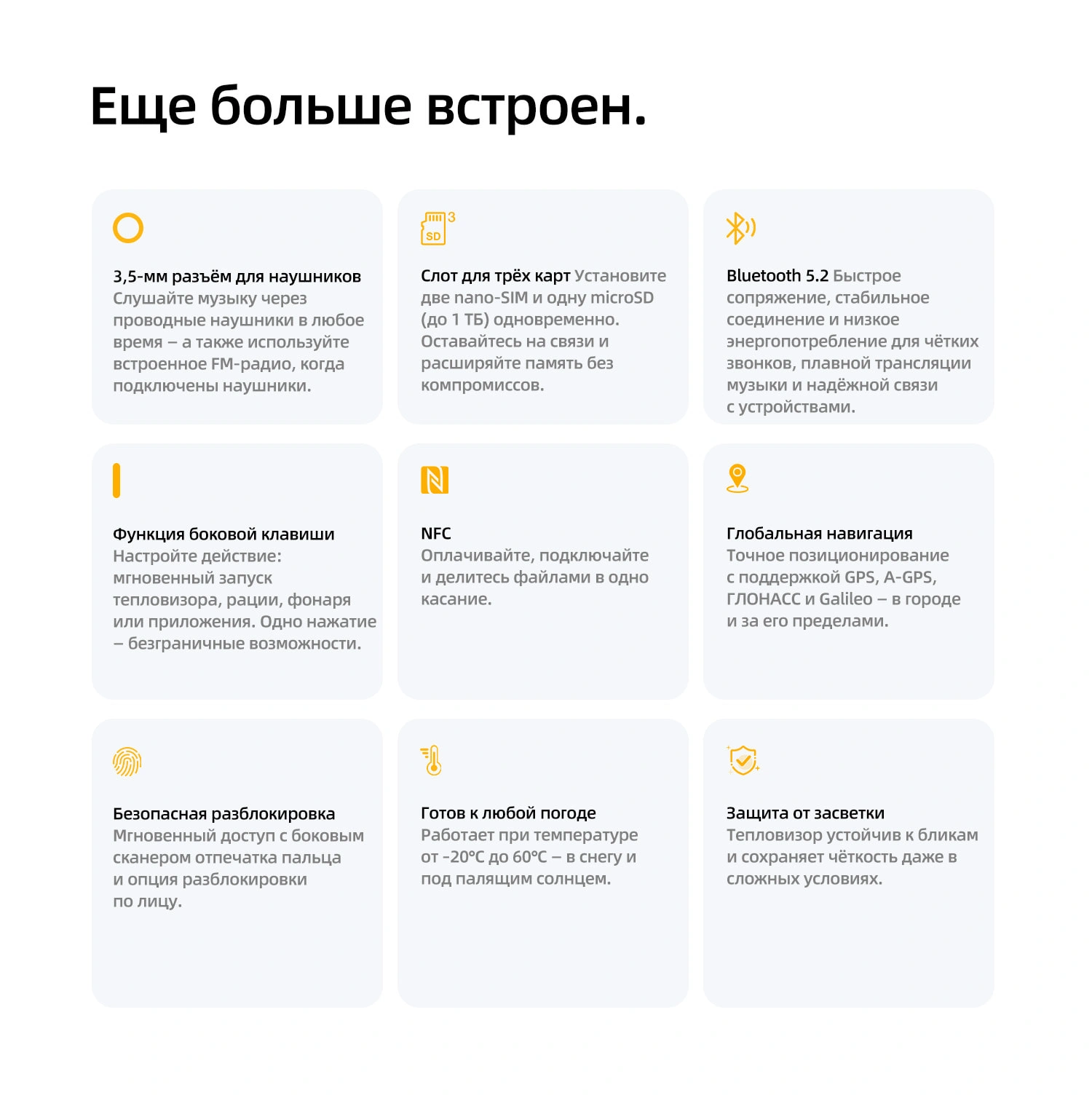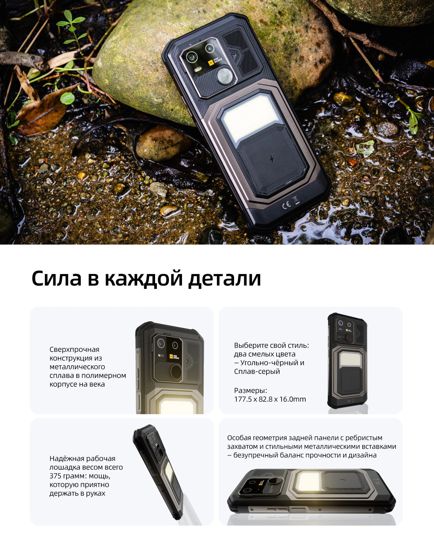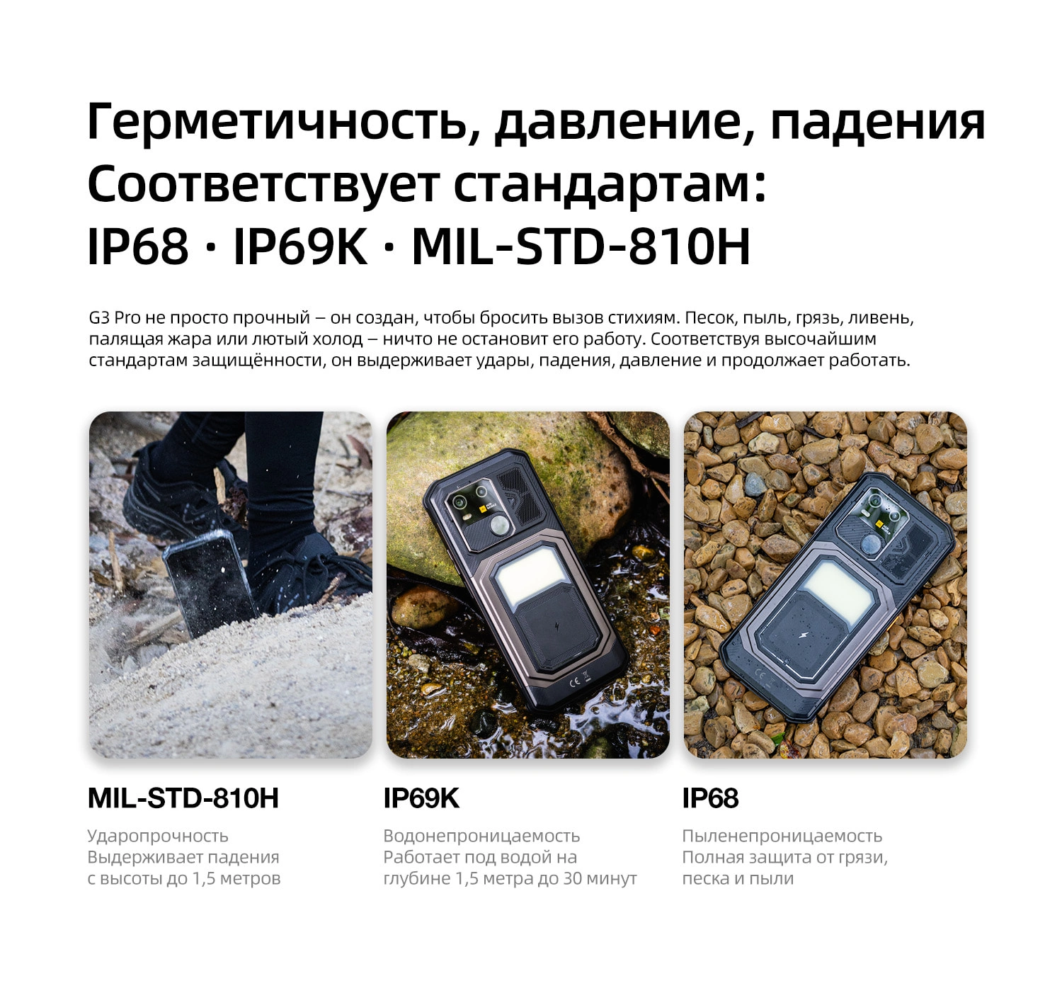 Прочность военного уровня — сертифицирован по стандартам IP68/IP69K/MIL-STD-810H