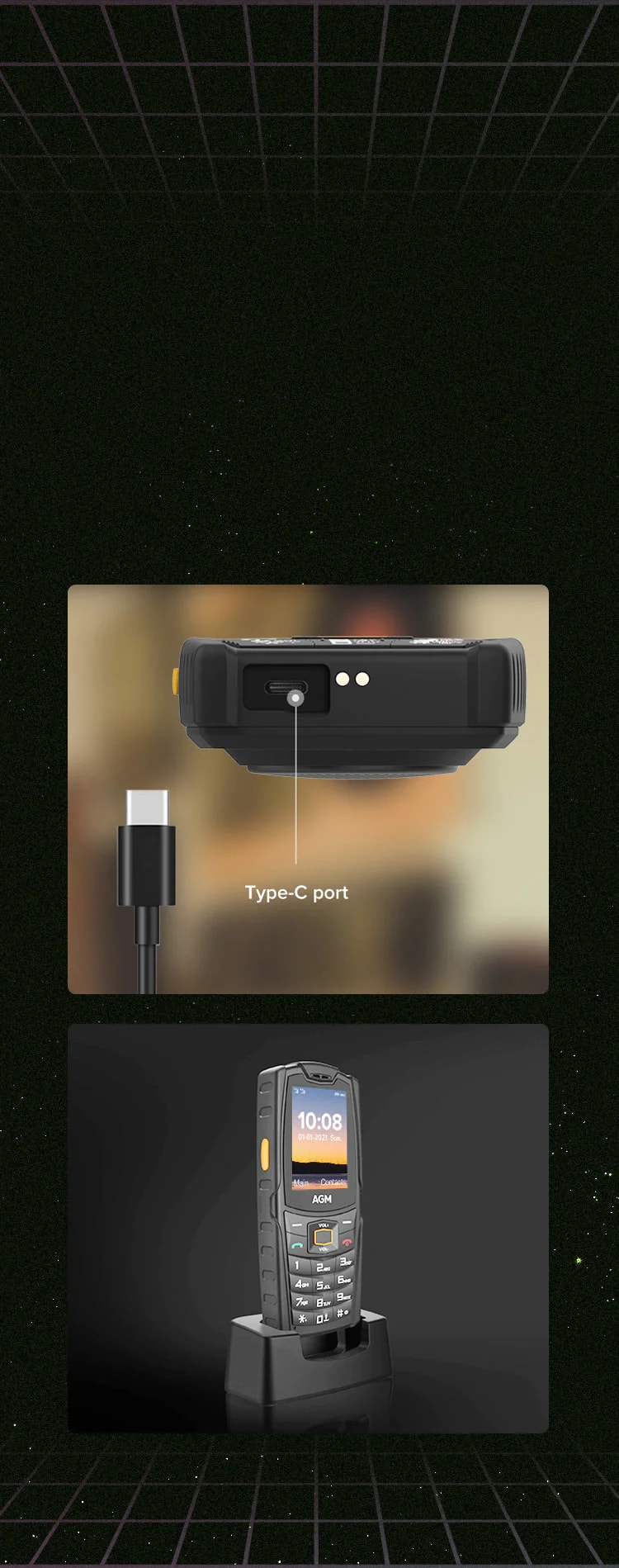 AGM M6 equips a 2.4″ display to give bright and clear images and easily navigate the phone menu. It is scratch resistance and withstand normal falls.