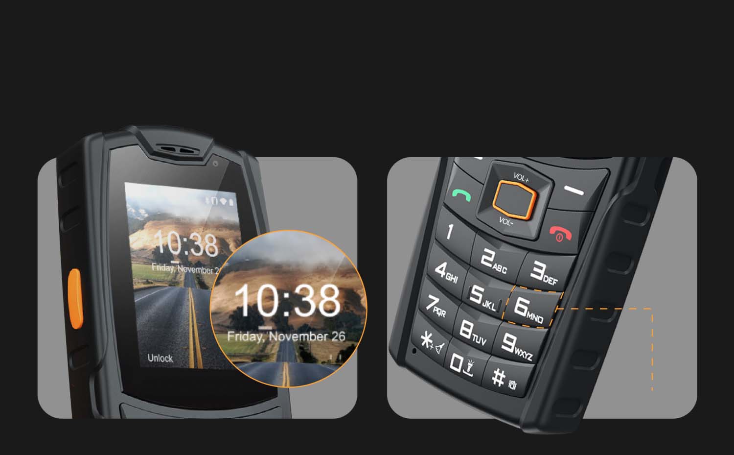 4G LTE Phone | 35mm Speaker | IP68&IP69K | 2.4″ Touch Screen | 1GB+8GB | 2500mAh Battery